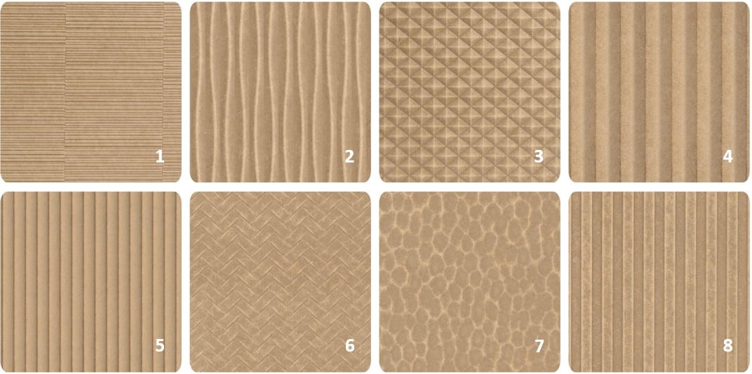 • Effet structuré sur une face avec un motif parmi 8 proposés